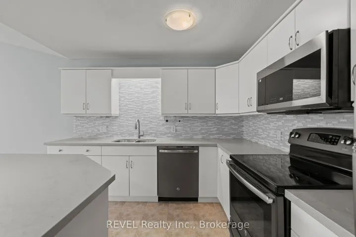 +"PublicRemarks": "READY FOR YOU TO MOVE IN! Completely Renovated from Top to Bottom! From the brand new garage door and front entry door to the stylish new flooring, this home has been thoughtfully upgraded throughout. Features include new laminate floors, new tiles, new baseboards, a new kitchen with modern backsplash and brand new appliances including integrated b/in dishwasher, plus freshly painted walls across the entire home.Enjoy the open-concept main floor layout - perfect for family living and entertaining. The spacious primary bedroom easily accommodates a king-size bed and still offers room for a home office or sitting area. The two additional bedrooms comfortably fit queen-size beds.The fully finished, renovated basement offers flexible space ready for your personal touch - ideal for a kids' playroom, media room, gym, or man cave.Parking is easy with a driveway that fits 2 cars. Maintenance fee INCLUDES WATER and ROOF!. Unbeatable Oakville location: walk to medical offices, shopping, and restaurants, and just minutes to QEW, 403, Sheridan College, and downtown Oakville."
