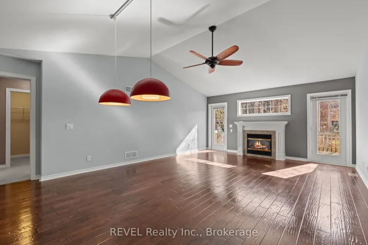 +"PublicRemarks": "Located in the highly desirable community of Forest Grove in North end St. Catharines, this beautiful bungalow townhome has been meticulously maintained throughout the years and is evident immediately upon entering. The bright spacious layout is warm and inviting with a large kitchen and island overlooking the dining area and living room featuring a cathedral ceiling, gas fireplace and newer floors. This home offers a very large primary bedroom with a walk-in closet, extra second closet and a 4pc ensuite. The front of the home has a second bdrm or study, Main floor laundry room and 3pc bathroom. Outside enjoy sitting on your large private deck, surrounded by the peaceful neighbourhood and beautiful gardens. Walking distance to the Welland Canal, and close to shopping, QEW and all amenities, this home has everything you need!"