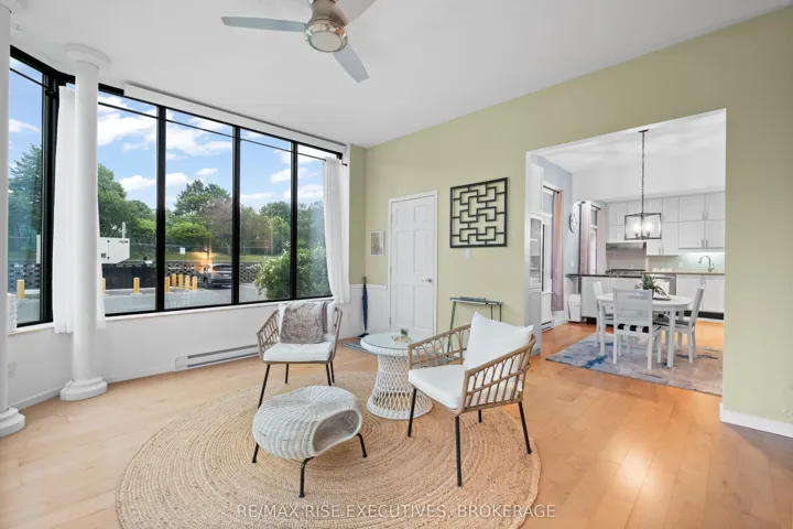 +"PublicRemarks": "Stunning Condo with Lake & Golf Course Views in Prime Kingston Location. Welcome to one of Kingston's most breathtaking condos, offering panoramic views of Lake Ontario, nearby parks, the Rideau Trail, and the Cataraqui Private Golf Club. This beautifully updated ground-floor unit features 10 ceilings, engineered hardwood throughout, and two private patios perfect for pet owners (25 lb max) or outdoor enthusiasts, with convenient side-door access. The spacious foyer leads into a modern kitchen with granite countertops, under-cabinet lighting, and stainless steel appliances (all new in 2020), including a stackable washer and dryer. The open-concept dining area with built-in cabinetry flows into the Atrium which is all windows overlooking the golf course. A bright and inviting family room features large patio doors and a built-in electric fireplace. The generous primary bedroom includes a custom built-in unit, walk-through closet, and a renovated 3-piece ensuite (2021) with a walk-in shower and heated tile flooring. A second spacious bedroom and updated 4-piece main bathroom also with heated floors complete the layout. Additional features include an in-unit storage room, two new air exchangers (2020), high-efficiency baseboard heating, one underground parking space, and a storage locker. Enjoy resort-style amenities: indoor pool, jacuzzi, sauna, gym, games room, and a penthouse library, guest suite, underground parking, car wash, solarium and more! A rare opportunity for luxurious, low-maintenance living in a premium Kingston location!"