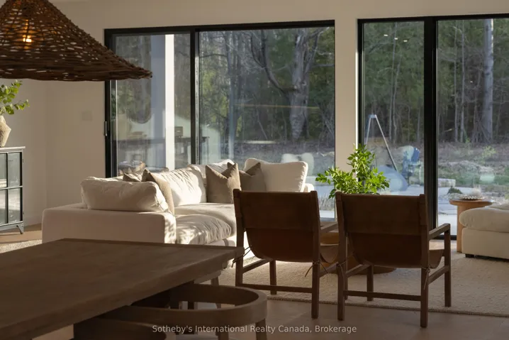 +"PublicRemarks": "Welcome to 120 Mimi Crescent, a modern country inspired 4 bed, 3-bath estate home set on approximately 3 acres within Rockcliffe Estates-an exclusive 42-lot community on the southern shore of Georgian Bay in the Municipality of Meaford, minutes from Owen Sound. With western exposure, Georgian Bay views, mature forest, and exceptional privacy, this is a rare offering that blends architectural distinction with natural beauty. Waterton Creek, a trout stream flowing through the rear of the property, adds a peaceful, ever-changing natural element. Georgian Bay access is moments away, with a shallow rocky shoreline ideal for swimming, paddling, and fishing, while the Bruce Trail is quite literally at your doorstep. Inside, the home is defined by exceptional material quality and thoughtful design. The main living space is anchored by a striking French country stone Rumford fireplace with herringbone brick inlay. A mix of Chevron and Plank engineered white oak flooring runs throughout, complemented by large format tile. The kitchen features Nile Gold sintered stone countertops, island, and backsplash, a Parisian plaster rangehood and a full Jenn Air NOIR panel integrated appliance suite. Custom white oak cabinetry, a white oak staircase, and LED accent lighting with Lutron dimming throughout. The walnut-accented ensuite, featuring champagne bronze fixtures and a custom trough sink, creates a cohesive and refined spa like setting. Mechanically, the home is equally impressive, featuring hydronic in-floor radiant heating on the main level, heated floors in both upstairs bathrooms, propane forced-air system with central A/C, and full closed-cell spray foam insulation achieving R-30 to R-35 for superior efficiency. Additional highlights include a pre-framed elevator shaft, in-floor heating rough-in in the 25 x 25 garage, and a full Tarion new home warranty. A rare opportunity to own a thoughtfully designed, future-ready home in one of the area's most coveted estate communities."