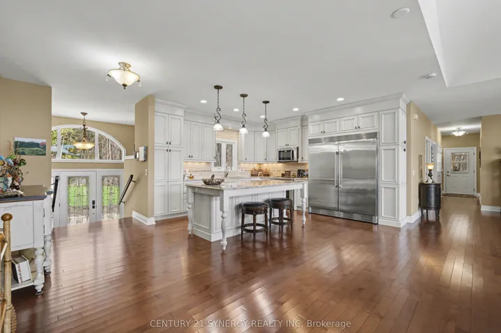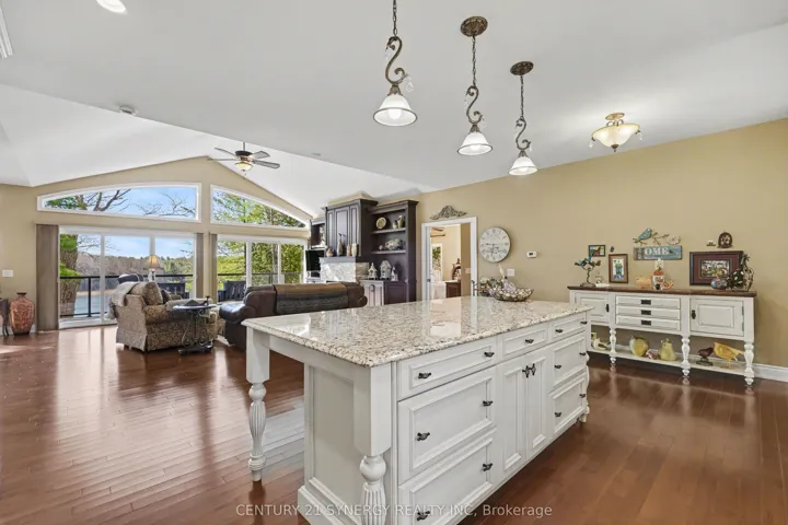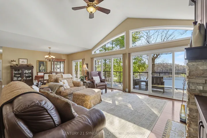 +"PublicRemarks": "Welcome to an extraordinary waterfront retreat where luxury, serenity, and natural beauty converge. Nestled along Gananoque Lake, this home offers an unparalleled lifestyle defined by privacy, breathtaking vistas, and access to over 24 miles of deep-water boating. From the moment you arrive, you are captivated by the home's seamless harmony with its surroundings. Expansive unobstructed views, inviting in spectacular sunrises and glowing moonrises, while the night skies here are nothing short of extraordinary filled with stars. Adding to the magic, a cherished family of loons returns each year, bringing a timeless sense of tranquility and connection to nature. A substantial dock extends into the water, creating the perfect setting. Inside, the residence is thoughtfully designed for both elegant entertaining and relaxed everyday living. Open-concept spaces flow effortlessly across levels, filled with natural light and warmth. Each level features its own inviting living area, complete with a beautiful fireplace-offering comfort and ambiance year-round. A versatile in-house studio provides the perfect haven for a creative spirit, while also serving as a potential family room or additional bedroom. At the heart of the home, the stunning kitchen inspires culinary excellence, featuring gleaming granite countertops, a central island and high-end stainless steel appliances. With four spacious bedrooms and three full bathrooms across two levels, comfort and flexibility are assured for family and guests alike. The fully finished walk-out lower level, constructed with ICF, boasts heated polished concrete floors-delivering cozy luxury in every season. A beautifully renovated screened sunroom extends your living space, offering a tranquil setting to unwind and soak in the surrounding landscape. Extensive upgrades ensure modern sophistication throughout, this is more than a home-it's a private retreat where every detail has been curated to complement an exceptional lifestyle."