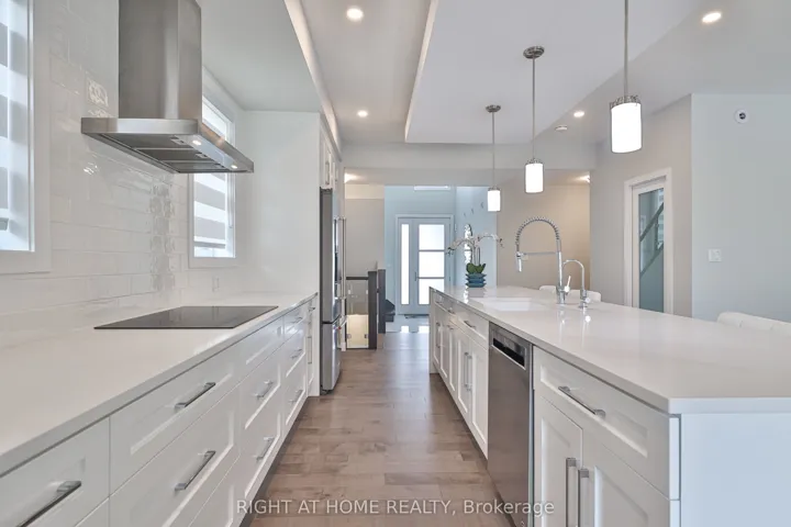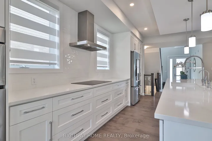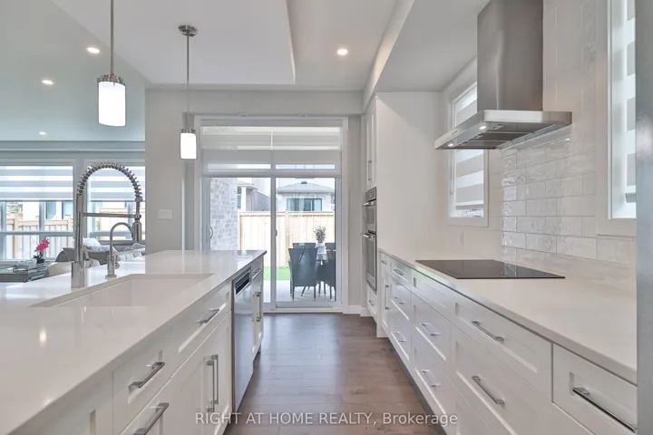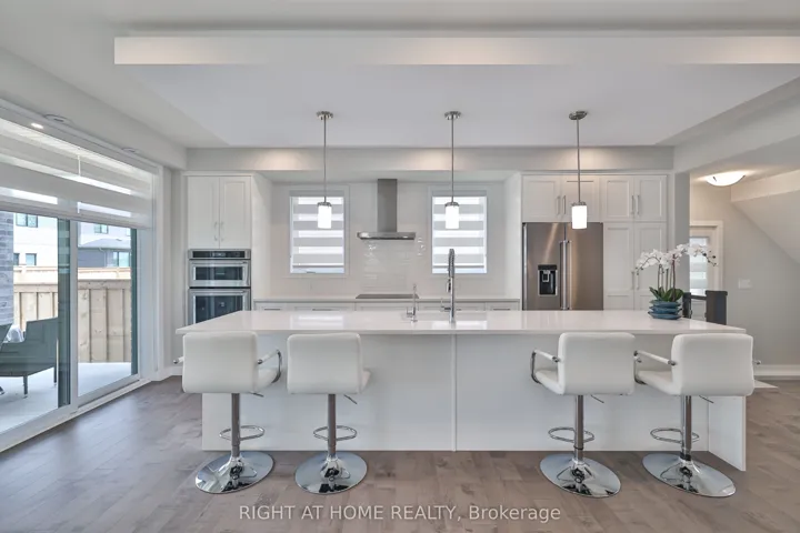 +"PublicRemarks": "Experience the pinnacle of green luxury. An architecturally striking Net Zero residence where timeless design meets forward-thinking sustainability. Spanning just under 3,000 square feet and located minutes from the University of Guelph, this one-of-a-kind home redefines modern living for the eco-conscious buyer. Inside, you're greeted by high ceilings, maple wide-plank hardwood floors, and a showpiece staircase adorned with glass railings and marble tile accents. This blend of craftsmanship and sophistication sets the tone throughout. The chefs kitchen is equally impressive, complete with custom cabinetry, high-end appliances including a Bosch cooktop, and seamless access to a covered outdoor sitting area and private backyard. The sun-filled main floor features an airy open-concept layout and a striking living space that walks out to a private balcony. For year-round comfort, the home includes a state-of-the-art air filtration system, a heat recovery water system, and integrated rooftop solar panels. Designed with both lifestyle and functionality in mind, a separate side entrance leads to the basement, offering income potential or a private in-law suite. Every inch of this home has been thoughtfully curated, from the sculptural fireplace wall to the modern ceiling fan that enhances both airflow and elegance. This is more than a home. It is a statement of intent where luxury, innovation, and environmental integrity converge in a rare and inspiring offering."