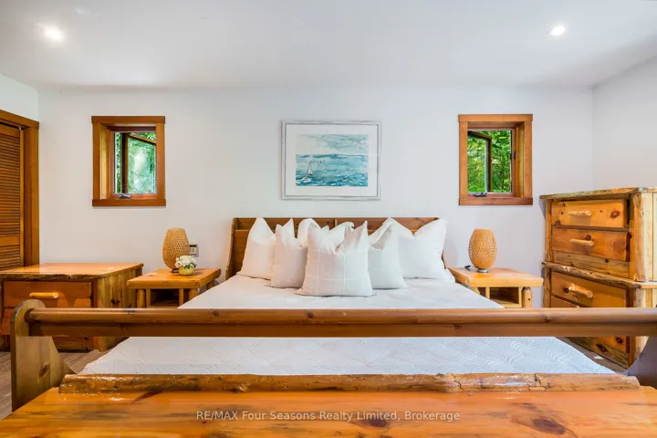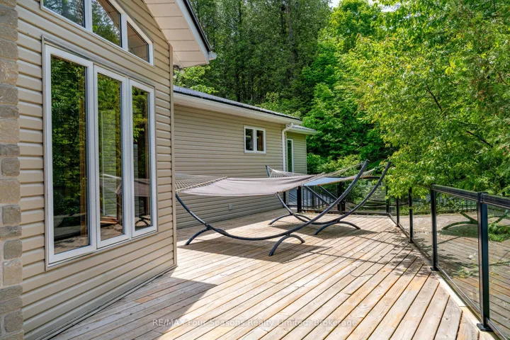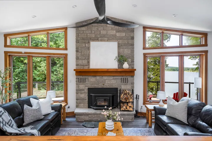 +"PublicRemarks": "Captivating Waterfront Estate on Brewster's Lake~5.14 Acres with 167 Feet of Shoreline! Welcome to your private lakeside retreat in the heart of Grey Highlands where nature and lifestyle converge. Situated on the serene shores of Brewster's Lake, this 5 bedroom, 3-bathroom chalet- style home offers over 3800 sq. ft. of beautifully designed living space with unspoiled waterfront and panoramic western vistas that promise unforgettable sunsets. Whether you're seeking a full-time residence, a seasonal getaway, or an investment opportunity, this property delivers (Property ~ Seller is currently using Lower Level as a licensed Air Bn B and lives full time on the main level. Perfect for generational living opportunities). HIGHLIGHTS *New Metal Roof 2025 *Expansive deck (walk out~1157 sf) *Patio with hot tub, *Bunkie *Sauna *Waterfront dock *Open concept design ideal for entertaining *Cathedral Ceiling *Double garage with inside entrance *2 Exquisite Stone Fireplaces with Wood Inserts (WETT Certified) *Main Floor Laundry *Lower Level Laundry *4 Season Sunroom *Lower level walk out. LOCATION: Just minutes from ski clubs~ Devils Glen, Osler Bluff, Blue Mountain *Championship Golf Courses~ Mad River, Osler Brook, Duntroon Highlands *Georgian Bay, *Waterfalls *Farmers Markets *Historic Downtown Collingwood *Village at Blue *Extensive Hiking/Biking Trails *ATV/Snowmobile Routes *Top-Tier Fishing right off your dock. Live where you play, Grey Highlands is the Home of Four-Season Adventure: kayak, swim, snowshoe, cross-country ski, or relax by the waters edge. With its proximity to both private and public recreational hubs, this property suits families, active retirees, weekenders, or those seeking a peaceful escape. Elevate your Lifestyle. Live your Legacy~ Your Waterfront Dream Starts Here! View Virtual Tour and Book your Showing Today!"