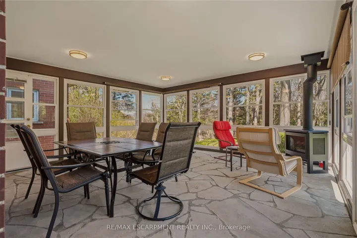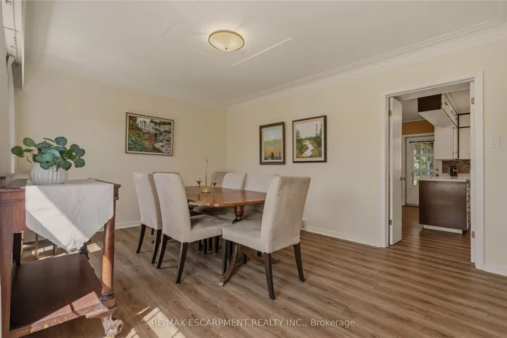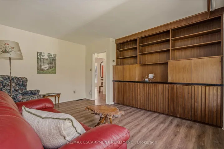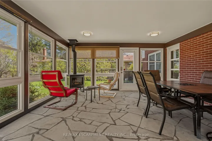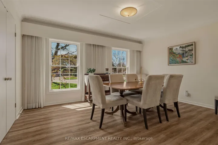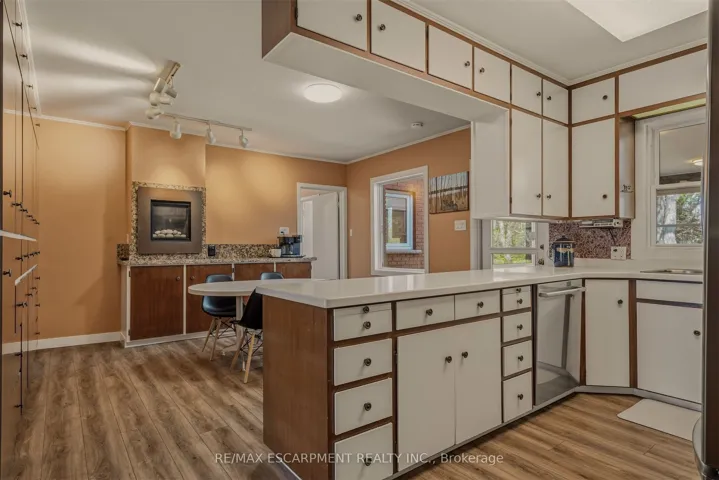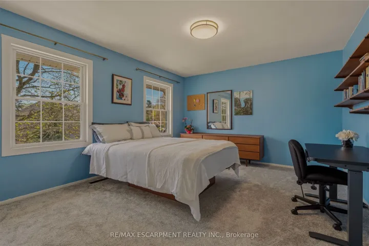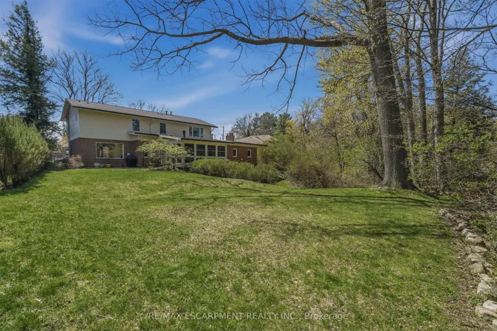 +"PublicRemarks": "A truly one-of-a-kind two-storey residence with unmistakable mid-century flair, this spacious 5-bedroom home blends character, functionality, and an extraordinary ravine setting in sought-after University Gardens. The main level is designed for both everyday living and entertaining, featuring a bright living room with fireplace, framed by treetop views, a formal dining room, and an eat-in kitchen with dramatic floor-to-ceiling pantry storage, dinette, and walk-out to the sunroom. The sunroom, boasting gorgeous stone floor and fireplace, steps out to the backyard and also connects to the inviting family room-perfect as a den, library, or cozy retreat-alongside main floor laundry, a powder room, and inside entry to the double garage. Upstairs, a distinctive floorplan offers four generous bedrooms and two full bathrooms, highlighted by a remarkable primary suite complete with sitting room or nursery, 5 piece ensuite, an entire wall of custom closets with hidden TV space, and private access to an adjoining bedroom currently used as an office. The fully renovated lower level offers incredible flexibility as an in-law suite, teen haven or multi-generational living, featuring a stylish rec room with bar area, powder room, fifth bedroom with kitchenette and private ensuite, plus a media/gym space with walk-out to the backyard patio and hot tub. Outside, the endless rear yard feels like a private escape, where you can spend your time birdwatching or enjoying evenings around the firepit in Muskoka chairs overlooking the ravine. Ideally located near top schools, University Plaza, Mc Master University, and convenient highway access, this is a rare opportunity to own a home unlike any other."