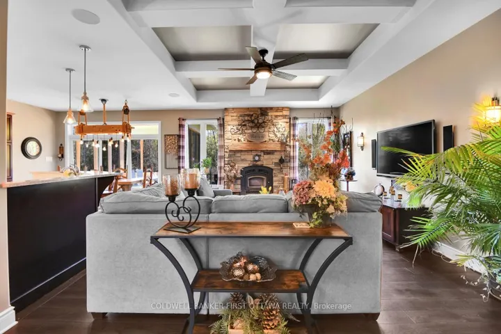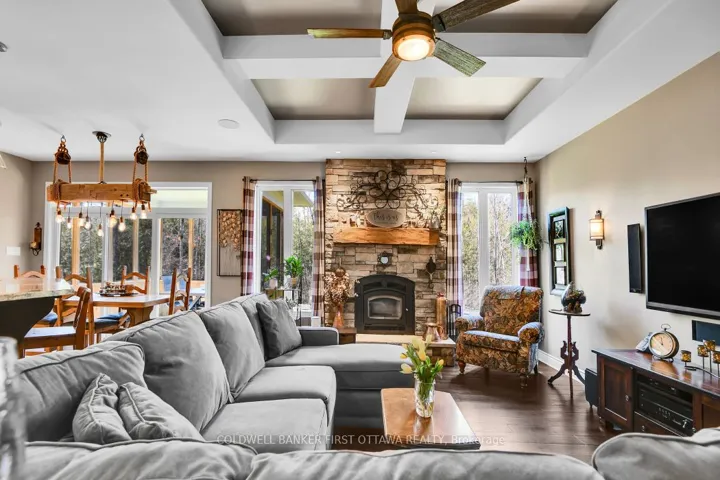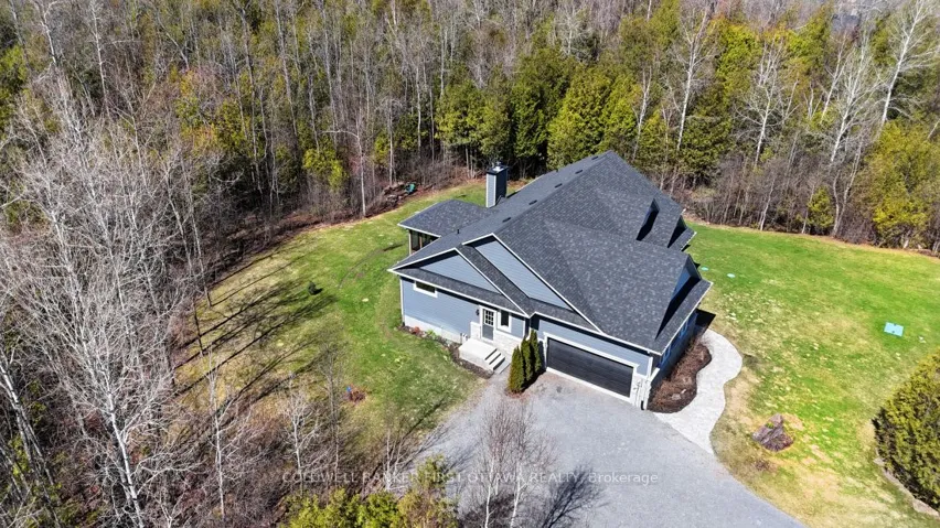 +"PublicRemarks": "Welcome to this custom-built Luxart estate home ,nestled on a private, wooded 1.5+ acre lot in a highly sought-after acreage community. Step into the welcoming and impressive foyer setting the tone for a home full of cozy charm. Enjoy your family room with spectacular stone fireplace, upgraded wood floors and wired for surround sound with built-in speakers. Entertain in your open kitchen complete with granite counters/breakfast island, eat-in dining with large patio door leading to a beautiful 3-season cedar screened-in room - ideal for enjoying the outdoors in comfort. No detail has been missed in the meticulously maintained executive rural 3+1 bedroom home boasting two ensuite bathrooms on the main floor (plus lower level rough-in); Special features rarely found include Wifi controlled irrigation system with hanging pot/planter lines, a convenient dog-washing station through side door entrance, Kinetico water softener and more. Large basement with massive recreational space, bright bedroom and office simply await your choice in flooring. Complete with basement bathroom rough-in, 200 amp service, workshop, dogwatch hidden fence system and tons of storage. Outside, the private wooded lot offers hot tub pad/electrical and firepit area - rural living within minutes of amenities, golf courses and more."