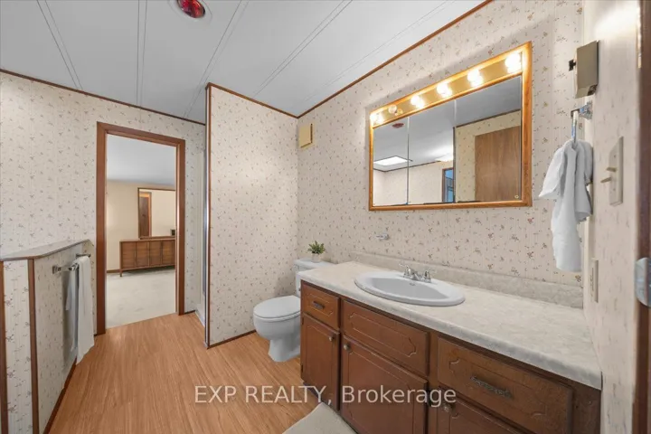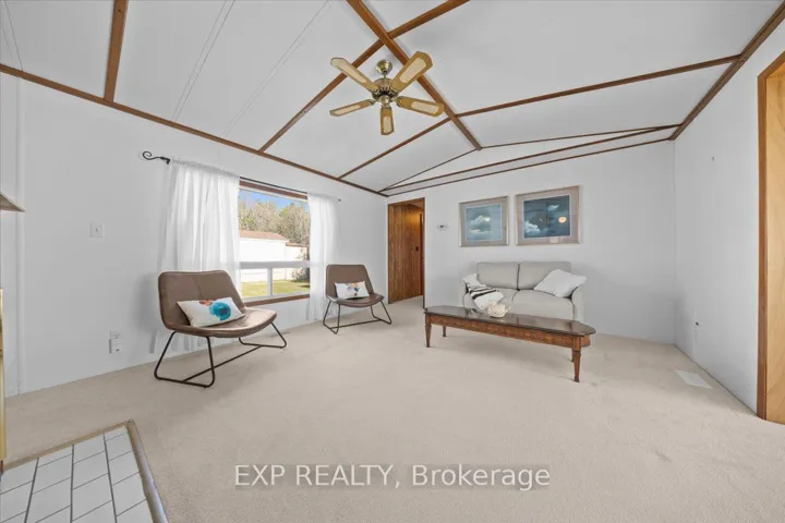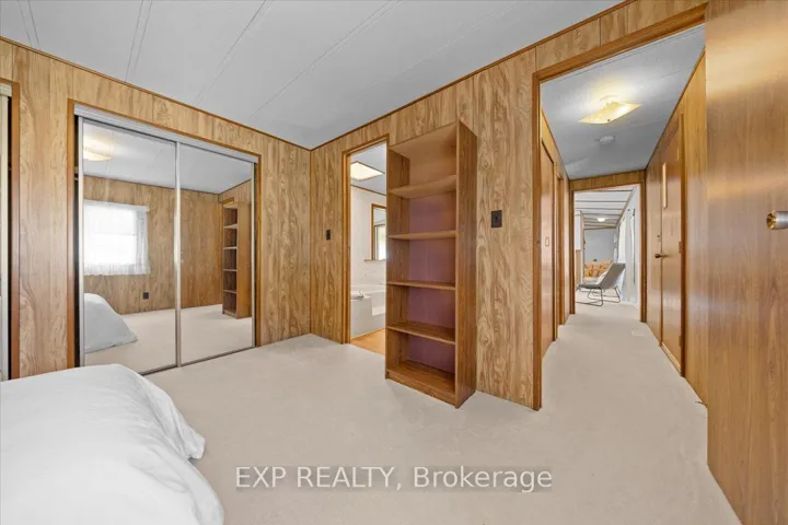 +"PublicRemarks": "This one can't be missed. Rarely available in this size, this mobile home in desirable adult oriented Rockwood Park in Carleton place is the perfect way to downsize without giving up interior space. Large double carport has plenty of room for parking and storage, with extra outdoor storage in a detached shed. Partial galley kitchen opens to an eat in dining nook on one side, and access to the open concept living/dining area on the other. Living room has great natural light and features a cozy gas fireplace There are 3 spacious bedrooms; the front bedroom has a 2 pc ensuite and the two at the back of the home have "cheater" ensuite access to a spacious 4 pc bath with soaker tub and shower. The largest bedroom has space for a sitting area/den in addition to the bedroom area. Laundry room is large enough to be a great multi-purpose hobby room, with adjacent storage/workshop space. Enclosed screened porch area lets you make the most of summer without the bugs. Land lease of $700/month, plus water testing and taxes. 24 hours irrevocable on all offers. Offers must be conditional on Park approval of the Buyer's land lease application."