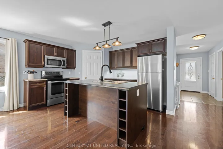 +"PublicRemarks": "The modern white kitchen is both stylish and functional, showcasing a 7-foot island with a breakfast bar and elegant granite countertops-perfect for entertaining. The spacious primary bedroom features a luxurious ensuite complete with double sinks, a 5-foot glass shower, and refined finishes. Two additional generously sized bedrooms offer ample closet space and are complemented by a well-appointed main bathroom. The lower level is about 75% already finished, except for the ceilings and bathroom, but all the fixtures (shower, vanity, toilet) are all there and ready to finish. Huge rec room with tons of large windows makes it nice and bright, plus another bedroom for teenagers or guests. The basement could easily be turned into a large in-law suite, too. Additional features include inside entry from the oversized 26' x 32' double car garage (with front and rear man doors), central air conditioning, garage door openers, fibreglass shingles, and a striking exterior finished with estate stone and vertical Hardie board. Enjoy the privacy and natural beauty of a mature hardwood forest, including beech, maple, white birch, and pine, ideal for creating your own walking or ATV trails. Located within walking distance to the Cataraqui Trail and just minutes from the Village of Sydenham, boat launch, beach, parks, shopping, and schools."