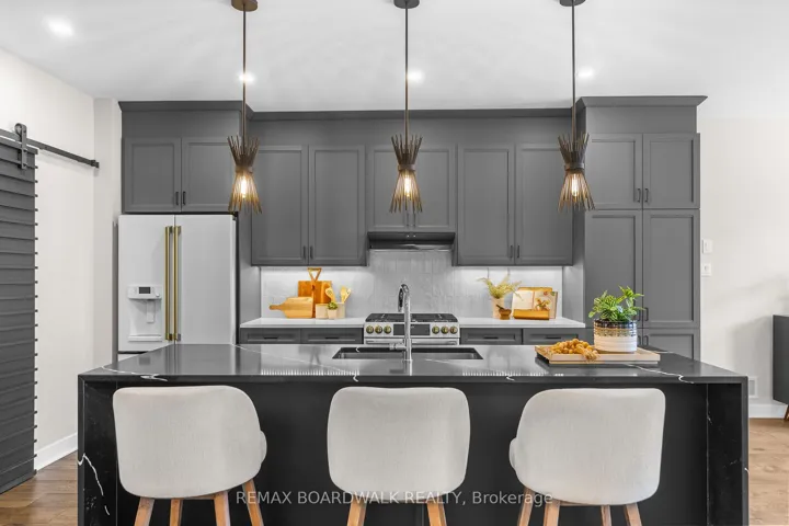 +"PublicRemarks": "Thoughtfully designed, meticulously finished, & effortlessly styled for the way modern families actually want to live! Upon entry the 9' ceilings are set off by the clean lines, natural light, and open concept design creating an atmosphere of effortless sophistication feeling both luxurious & genuinely welcoming. Sleek custom cabinetry anchored with accenting quartz countertops & a dramatic waterfall island including a separate pantry & high end appliances; a culinary dream & centre of the living space! Chic fireplace & wall of windows finish the living space. Hard-surface flooring thru-out the home is seamless providing low maintenance living. Upstairs layout with secondary bedrooms generously proportioned, walk in closets; they share a 4pc. bath that carry the sleek finishes from the main level & separate them from the primary suite. Spacious & serene suite with a walk-in closet generously scaled, w/dressing space. The 5 pc. spa like ensuite is perfect for your end of day retreat, with ample space for a king size bed this primary bedroom is perfect after a long day! The laundry room tucked on this 2nd floor is the perfect size and includes a window! The lower level designed for the growing family & entertaining is wired for a home theatre and features a stylish wet bar area. A den/office with double doors makes a great work space or for overnight guests. With a rough-in & framed bathroom - there is room to expand on.The outdoor space was not overlooked - fully fenced & landscaping completed to carry the clean lines and chic finishes outdoors for summer entertaining including an upper deck for coffee & cocktails on the busier workdays! This model was modified from a 4 bedroom plan and thoughtfully finished giving the primary suite the attention & space it deserves. This home has been meticulously maintained & thoughtfully designed to be one of a kind that will not disappoint, beautifully located within a community of its own. Not just a house....this is home!"