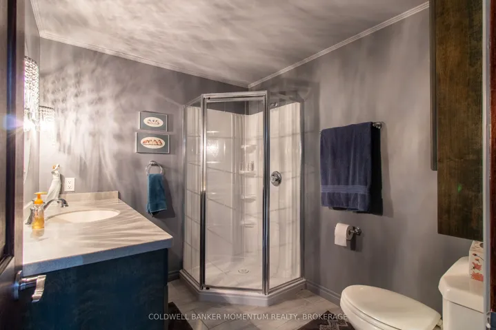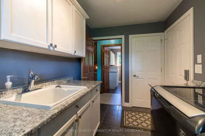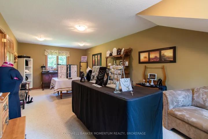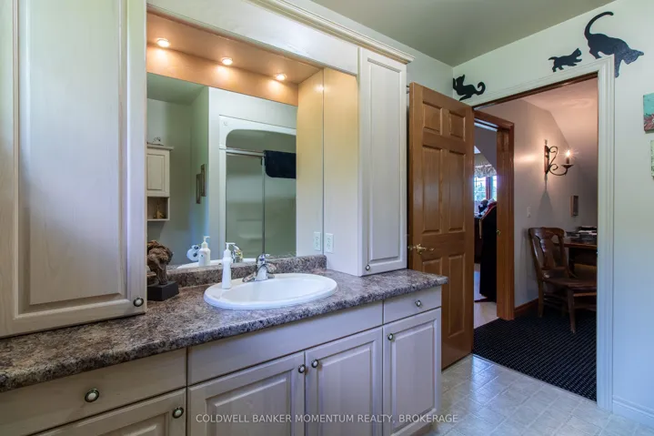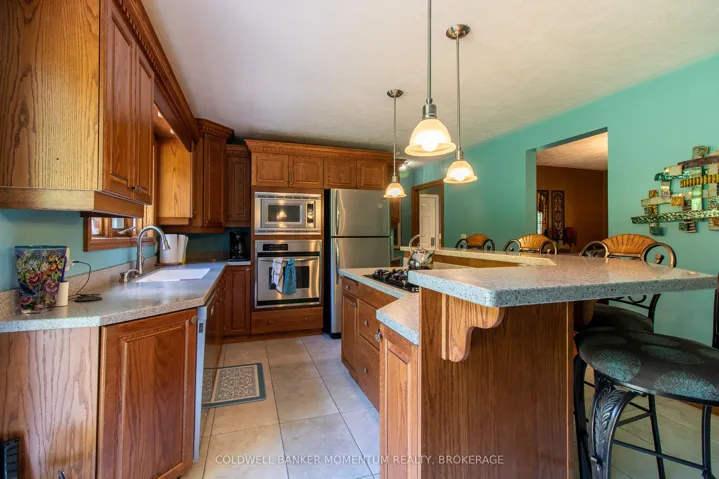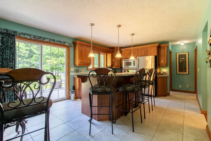 +"PublicRemarks": "Gracefully set upon a serene country lot, this custom-built residence embodies timeless elegance and refined living. Surrounded by mature trees and natural beauty, the property offers a rare sense of privacy and tranquility-an exceptional retreat from the everyday. Inside, soaring ceilings in the main living room create a sense of grandeur, while a thoughtfully designed layout ensures both comfort and effortless flow. The kitchen, complete with built-in appliances, is both sophisticated and functional-perfectly suited for intimate gatherings or elevated entertaining. The home offers three generously sized bedrooms with the primary on the main level with four beautifully appointed bathrooms, providing ample space for family and guests alike. The fully finished basement extends the living space with a stylish bar area, creating the perfect setting for hosting, while offering an abundance of storage to keep everything organized and out of sight. Outdoors, a wrap-around Trex deck invites you to relax and take in the peaceful surroundings. Unwind in the hot tub, entertain under the open sky, or envision the possibilities there is plenty of space to add a pool and create your own private outdoor oasis. The manicured grounds are effortlessly maintained with an automatic sprinkler system, keeping the landscape lush throughout the seasons. Adding further appeal, this property features a shop ideal for hobbies or a home-based business, an expansive two bay garage, with a large parking area with room for multiple vehicles, trailers, or guests. This remarkable property is a seamless blend of craftsmanship, elegance, and country charm offering a lifestyle defined by space, privacy, and quiet sophistication."