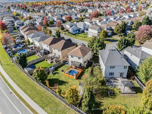 +"PublicRemarks": "Beautifully maintained 3+1 bedroom family home nestled in the sought-after Morris Village community of Rockland, set on a large pie-shaped lot with no rear neighbours for added privacy. Thoughtfully designed with the perfect balance of modern sophistication and family-friendly comfort, this home offers stylish finishes and functional living spaces throughout. Gorgeous blonde hardwood flooring, neutral tones, custom blinds, and elegant shutters create a warm and inviting atmosphere from the moment you enter. The bright open-concept layout is ideal for everyday family living and entertaining alike. A cozy gas fireplace anchors the living room, adding both charm and comfort. The well-appointed kitchen features timeless cream-coloured cabinetry, a stunning statement backsplash, and a spacious peninsula with breakfast bar seating-perfect for meal preparation and casual dining. Patio doors from the living area provide seamless access to the backyard oasis. Set on one of the largest premium lots in the neighbourhood, the fully fenced backyard offers exceptional privacy and plenty of space to enjoy. Relax on the cedar deck overlooking the beautifully finished yard, complete with a salt water 12-foot above-ground pool-perfect for summer entertaining. The second level offers three generous bedrooms, convenient laundry, and a full family bathroom. The spacious primary suite includes a full wall of closet space and a private ensuite bath. The fully finished basement adds impressive versatility with a large recreation room ideal for movie nights, a play area, or home gym, along with a fourth bedroom perfect for guests, a teenager retreat, or home office. An exceptional opportunity to own a stylish and spacious family home in a fantastic community close to parks, schools, shopping, and everyday amenities."