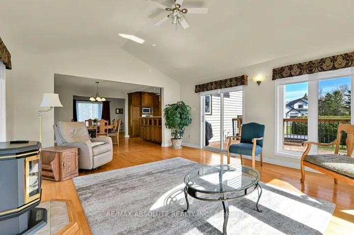 +"PublicRemarks": "Welcome to this beautiful property on its park-like lot in the heart of the Village of Russell. There is so much to say about this home and what it offers! On the main floor, you are greeted with a large living room with bright bay window overlooking the front yard. Open to the living room is the dining room which also opens up to the spectacular family room/sunroom addition. This sun-soaked addition is surrounded by windows on all sides, overlooking the beautiful backyard and features cathedral ceilings and a free-standing gas stove for cozy evenings year round. The kitchen was completely renovated in 2007 and features heated floor, TONS of storage and built-in appliances. There is hardwood and tile throughout the main level. A few steps down (at grade level) you will find a hallway with more heated tile flooring, inside access to the double garage, a 2 pce bath and separate laundry room. Upstairs, you will find a large family bath with bright skylight, 2 very generous bedrooms plus the spacious Primary Bedroom with walk-in closet and 3 pce bath. All but one bedroom feature hardwood flooring as well. In the basement you will find a huge rec room with gas fireplace and pot lighting, pantry with large built-in shelving as well as a spacious cold storage. The gorgeous backyard features mature trees and tidy landscaping, raised deck off the family room and a great detached garage/workshop with 220v power! A great spot for a man-cave or a she-shed! It also features an interlock patio as well. With over half an acre on a pie-shaped lot in the desirable Village of Russell, this is the perfect family home! Many important updates over the years. Walking distance to schools and amenities and steps away from the trails in the WE Burton Conservation Area along the Castor River."