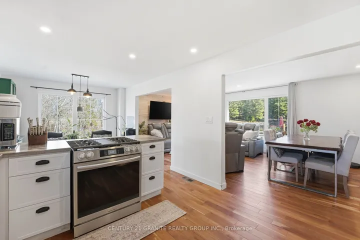 +"PublicRemarks": "Beautifully renovated 1366 sq ft sidesplit home set on an impressive 115 x 67 ft corner lot in the highly desirable East Guelph neighbourhood. Conveniently located just minutes from the University of Guelph, nearby recreation centres, scenic trails, and a full range of amenities, the home also features a bus stop directly beside the property for effortless transit access. The main floor showcases a bright, open-concept layout that seamlessly connects the living room, dining area, and kitchen. Large windows overlook both the front and backyard, filling the space with natural light while allowing you to easily keep an eye on children or pets outdoors. Upstairs, you'll find three bedrooms and a 3-piece bathroom. A standout feature of this home is the lower level with its private separate entrance, creating excellent potential for in-law suite in future. This level includes two additional bedrooms and a full bathroom, offering flexibility and privacy for a variety of living arrangements. The expansive side yard is a true highlight of the property, offering an incredible outdoor retreat rarely found in city homes. Featuring a gazebo, outhouse/storage shed, and a dedicated gravel fire and barbecue area. The current owners have invested significantly in quality updates, ensuring a move-in-ready experience for the next buyer. Recent improvements include a 200-amp electrical panel (2024), fresh paint (2026), new vinyl flooring (2026), modern lighting (2026), a new front entrance door (2026), garage door (2025), outdoor gravel parking (2024), a backyard gravel fire/barbecue area (2026), and a 3-piece basement bathroom (2024). Large lot size offers buyers to explore possibilities of future developmental opportunities. A photo of permitted zoning uses is included in the listing for reference. A rare opportunity to own a thoughtfully updated, move-in-ready home on a premium lot in one of Guelph's most sought-after locations."