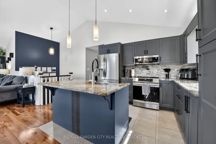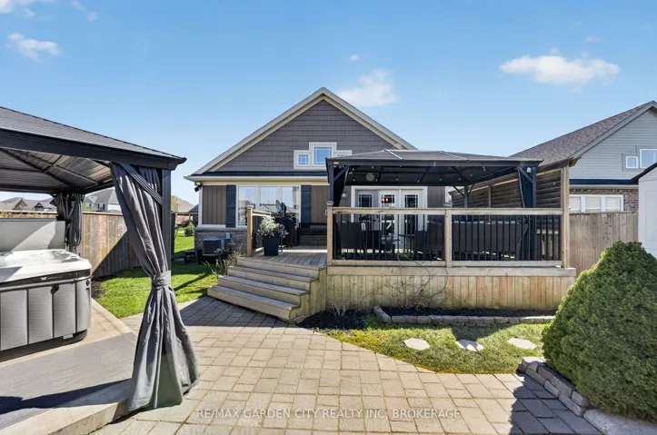 +"PublicRemarks": "Quality built by Rinaldi Homes in 2012, and updated over the past 2-3 years, this 3 Bedroom, 3 Bathroom BUNGALOW in sought after Coyle Creek will impress. Good sized Front Foyer. Spacious Primary Bedroom includes a 3 pc. Ensuite Bathroom with double sink vanity and large walk in closet. Secondary Bedroom, main floor 4 pc. Bathroom and Laundry room, leads you to a Open Concept Kitchen with eating island, granite counters, Dining Room and Living Room, featuring a stone wall Fireplace with side built in's. From the Dining room, Double doors lead out to a large deck with a 10 ft. x 14 ft Gazebo, fully fenced landscaped backyard with deluxe Hot Tub also Gazebo covered. A side gate steps you into Gaiser Park. The finished lower boasts a Rec room with Fireplace, kitchen station, the 3rd large Bedroom ( egress window) with large walk in closet and 4 pc. privilege Bathroom. This home is carpet free, hardwood on the main, luxury vinyl in the lower. Concrete aggregate driveway, deluxe garage door opener are just some of the numerous upgrades made to this home. Low UT's bills and close to all amenities, Don't miss out."