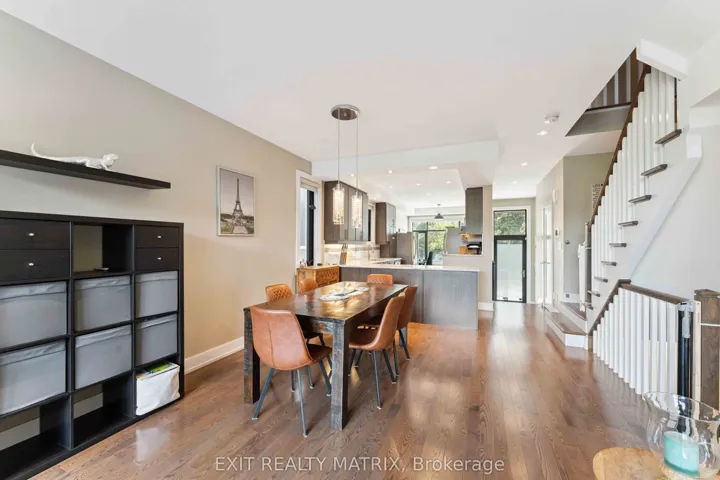 +"PublicRemarks": "Clean, modern semi-detached home with striking contemporary design, featuring sleek vertical cladding, large windows, and private garageparking. Thoughtfully designed entryways and elevated living spaces offer both style and functionality in a prime urban setting. Hardwoodthroughout main level, staircases and bedroom level. This 3-bedroom, 2.5-bathroom home offers the perfect balance of space, comfort, andeveryday practicality. Large kitchen w/ quartz counter tops, stainless steel appliances, plenty of work space, cupboards and even a eat-in area.Bright rooms and a well-designed layout create an easy flow for both living and entertaining, while generously sized bedrooms provide flexibilityfor families, professionals, or guests. Ideally located in a central Ottawa neighbourhood. You're just minutes from downtown, the LRT (Tremblay Station), shopping, parks, and key amenities including HWY 417, Rideau Sports Centre, Adawe bridge to Sandy Hill/u Ottawa, grocery stores,community centre (pool, Sens rink, playground, community garden). The outdoor space adds even more appeal, offering room to relax, entertain,or unwind. It includes a deck off the living room and a private fully fenced backyard w/ shed great for kids or pets. New furnace has just beeninstalled. A strong option for professionals or young families, combining modern design, a functional layout, and a highly convenient location.Opportunities like this don't last-schedule your showing today before it's gone."