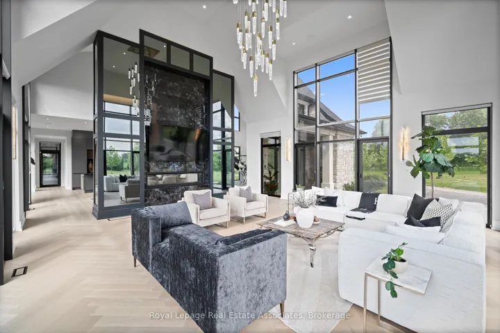 +"PublicRemarks": "Welcome to an architectural masterpiece nestled on 18 private acres of picturesque landscape. This brand-new, custom- built estate is a modern sanctuary that effortlessly blends luxury, design, and nature. Step inside to discover stunning herringbone light hardwood floors, soaring cathedral ceilings, and dramatic black marble accents that create a bold, yet elegant aesthetic. Every inch of this home has been crafted with top-of-the-line imported finishes, from high-end designer lighting to exquisite custom millwork and built-ins. The black-framed, floor-to-ceiling windows flood the space with natural light while perfectly framing the serene outdoor views. The chefs kitchen and open-concept living space are made for both entertaining and everyday luxury. Downstairs, a fully finished basement with a sleek wet bar provides the perfect space for hosting or relaxing. Outside, the grounds are professionally landscaped, offering a private and peaceful setting that feels like your own retreat from the world. This is not just a home it's a lifestyle. A modern design marvel on a breathtaking canvas."