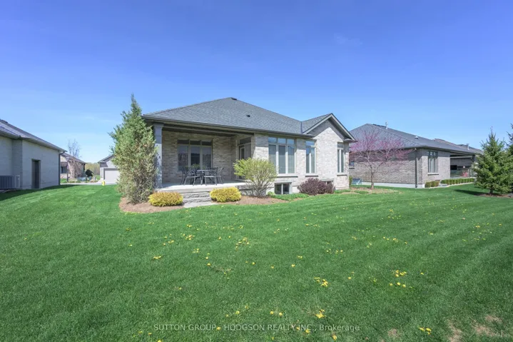 +"PublicRemarks": "Welcome to Riverbend, London's premier 50+ gated golf community, where lifestyle, comfort, and community come together. Set within a beautifully maintained enclave centered around a private Doug Carrick golf course and acres of protected green space, residents enjoy 24-hour concierge service, a 28,000 sqft clubhouse with dining, lounge, pool, fitness centre, and an active social calendar, all surrounded by scenic walking trails.This inviting, move-in ready bungalow offers exceptional one-floor living and an ideal entry point into detached homes in Riverbend. Just 8 years old, the home begins with a welcoming front porch, perfect for morning coffee, and opens to a wide, gracious foyer. A vaulted-ceiling office or den sits just off the entry, offering a bright and versatile space for work or relaxation.The main living area is spacious and filled with natural light, featuring vaulted ceilings and seamless flow into the kitchen and eating area. The kitchen is finished in a light, timeless palette with crown-topped cabinetry, quartz countertops, ceramic tile and opening to a lovely dinette area with walkout to covered porch. A separate formal dining room easily hosts family gatherings and special occasions.Two well-proportioned bedrooms include a comfortable primary retreat with a full ensuite featuring double sinks, soaker tub, and separate shower. The second bedroom offers a large closet and is ideal for guests. Hardwood flooring runs through the principal spaces, with quartz surfaces carried into both bathrooms. A well-sized mudroom with laundry connects to the garage, which includes space for a golf cart.The outdoor setting offers a pleasant backdrop with thoughtful tree plantings that are already enhancing privacy and will continue to mature beautifully. With lower maintenance living, a welcoming community atmosphere, and access to exceptional amenities, this is a wonderful opportunity to enjoy Riverbend living. Land lease $863.57/month, Maintenance $646.92/month."
