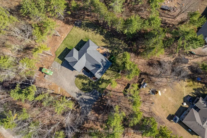 +"PublicRemarks": "Set on over 1.2 acres in the quiet community of Kilworthy, this newly built custom 2,000 sf bungalow offers the perfect balance of modern comfort and Muskoka lifestyle. Ideally located just minutes from Highway 11, you'll enjoy seamless access north to Gravenhurst or south to Orillia, making commuting or weekend escapes effortless. Thoughtfully designed, this 3-bedroom home showcases an open-concept kitchen and living space with soaring 12-foot ceilings, creating a bright and inviting atmosphere that's perfect for both entertaining and everyday living. The layout is exceptionally functional, with the primary suite positioned on its own wing, offering privacy and separation from the additional bedrooms-ideal for families or hosting guests. With 2.5 bathrooms, there's plenty of space to comfortably accommodate everyone. The full-height unfinished basement presents a blank canvas for the next owner, complete with a partially finished bathroom to help jumpstart future development-whether you envision additional living space, a rec room, or a home gym. For those who value workspace and storage, the insulated and heated 3-car garage is a standout feature, providing ample room for vehicles, tools, and year-round projects, also ready to charge your electric vehicle with a roughed in 60 amp car charger. Outdoors, the property truly embraces the Muskoka setting. Professionally landscaped and hardscaped, with fresh sod laid last fall, the expansive yard offers plenty of space for outdoor activities, entertaining, or simply enjoying the peaceful surroundings. This is a rare opportunity to own a turn-key custom home with room to grow, all while being connected to the best of Muskoka living."
