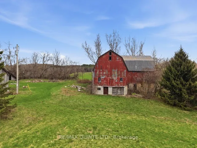 +"PublicRemarks": "Nestled atop a hill & set well back from the road along a picturesque tree-lined drive, this exceptional 100-acre property offers privacy, history & endless possibilities. Known as "New Farm," this rare offering features approximately 60 acres of workable fields & pasture, 40 acres of mature woodland, a natural pond & scenic laneways & trails winding throughout the rolling landscape. With breathtaking views of fields, wooded valleys & rolling hills at every turn, the setting is truly storybook. Proudly held by the same family for over 50 years, this property is rich in heritage and character. The agricultural potential is exceptional, with opportunities for orchards, diversified crops, livestock, or regenerative farming. The mid-1800s century stone farmhouse is surrounded by mature lilac, maple, walnut & pine trees & enjoys sweeping pastoral views from every window. Outbuildings include a large barn & drive shed, ideal for farming, storage, or hobby use. Inside, the home showcases timeless craftsmanship, high ceilings, and spacious principal rooms. The main floor features a pantry kitchen, a large dining area with a charming DJ Barker Co. cast iron stove, an expansive living room, separate games room, a 3-piece bathroom, & a large stone-walled side entrance with potential for conversion to additional living space or an in-law suite. The second floor offers three bedrooms, including "The Loft," a unique oversized sleeping area accommodating up to 10 guests, along with a second bathroom. Great for family gatherings & entertaining, this remarkable property offers the opportunity to enjoy as-is or reimagine through thoughtful modernization. Conveniently located just 15 minutes to Belleville, 30 minutes to Prince Edward County, 2 hours to Toronto, and 2.5 hours to Ottawa, it offers peaceful country living with easy access to amenities, schools & urban centres. A truly rare opportunity to own a legacy property in the heart of Hastings County."