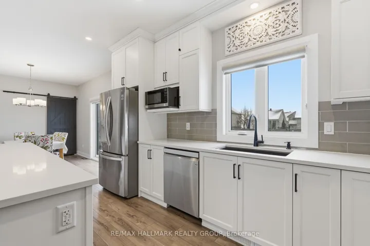 +"PublicRemarks": "Set on an OVERSIZED, fully PVC fenced PREMIUM pie-shaped/corner LOT offering expanded backyard space with NO REAR NEIGHBOURS. Welcome to 1212 Avignon Street. Built in 2021, this SACA 2,278 sqft falcon model two-story home features 5 bedrooms and 4 bathrooms with insulated double car garage. Located walking distance from parks & schools in one of Embrun most sought-after neighbourhoods while being ONLY 15/20 minutes from Ottawa. Main level leading to the open-concept layout featuring a stunning living room with cozy gas fire place and welcoming dining room. The striking gourmet kitchen is outfitted with quartz countertops, ample up to ceiling cabinetry, stainless steel appliances and centre island. Upper-level features a primary suite with a 4-piece ensuite & a walk-in closets; another 3 good size bedrooms & a modern 3-piece main bathroom. 85% fully finished lower level offering a huge recreational room; a modern 3 pce bathroom; a 5th bedroom & plenty of storage space. Fully PVC fenced OVERSIZE; PREMIUM pie-shaped LOT offering plenty of deck space & a convenient gazebo's with NO REAR NEIGHBOURS. Featuring; Custom wood work in the family room(2021), custom blinds (2021), PVC fencing with 2 doors(2021), Trex deck (2021), 200AMP. BOOK YOUR PRIVATE SHOWING TODAY!!!"