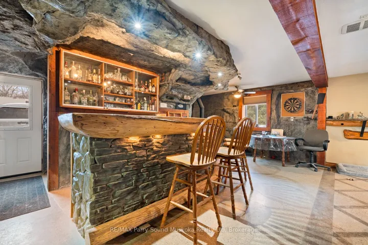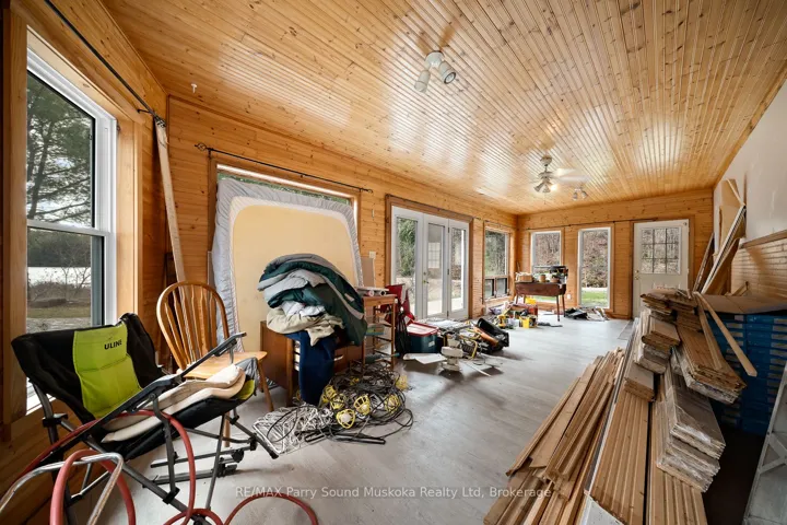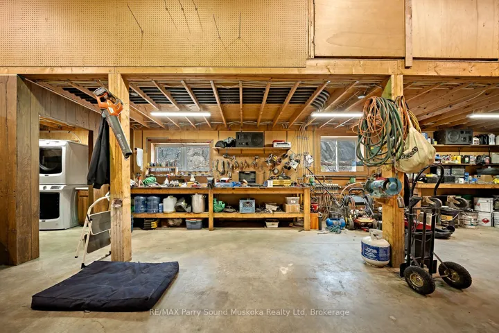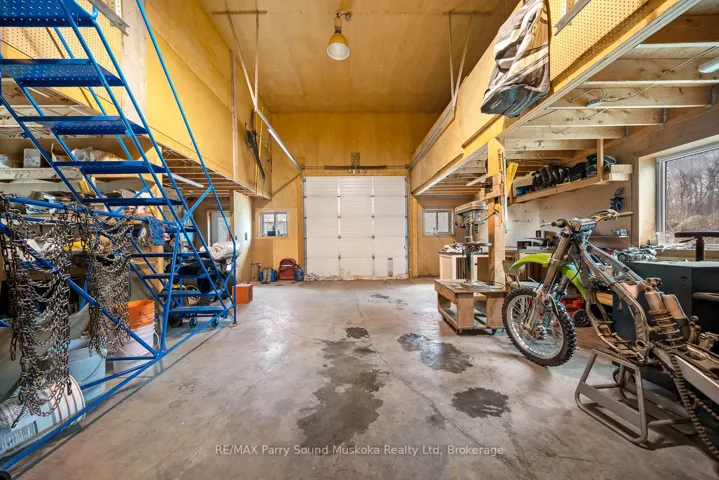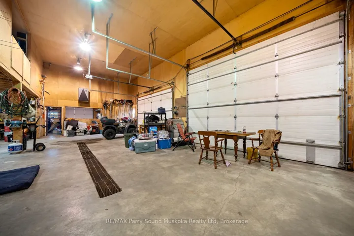 +"PublicRemarks": "Rare 12.25-acre waterfront package on quiet Murdoch Lake, offering an incredible 915 ft of shoreline just 10 minutes south of Parry Sound. Well-treed and nicely tucked away, the property delivers privacy, space, and beautiful lake views. The main house on the lake is a a solid 2-bedroom home, plus an unfinished half that has been taken back to the studs, ready for whatever direction you want to take it. The standout feature is the massive 4,400+ sq ft detached shop/studio with in-floor heat, multiple access points, office space, a finished upper level, and a picturesque "man-cave". Ideal for contractors, hobbyists, or home-based businesses, with plenty of functional space and flexibility throughout the property. Property also includes a second detached double garage. A rare, versatile waterfront offering with strong residential, recreational, or workspace potential. Use it as-is, complete the remaining finishes, or reimagine it to suit your needs."