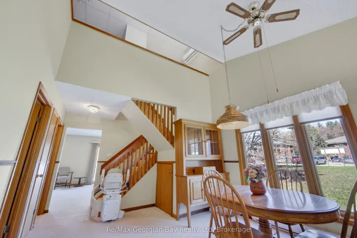 +"PublicRemarks": "Looking to downsize and move closer to town & the hospital, well check out this lovely 2 storey, 3 bedroom, 2 bath, end unit Townhouse located in a desirable area of Bracebridge and walking distance to the hospital, golf course, downtown, drug store and Tim Hortons! This well maintained Townhouse features a metal roof, large back deck offering some privacy overlooking forest with the deer run in the back, lots of natural light, kitchen with dining area & cathedral ceiling, main floor laundry, large living room with brick propane fireplace & a walkout to the deck, attached single garage, newer heat pump & AC approx 1 yr, Acorn Chair Lift with some warranty until Nov and a 5 to 6 foot crawl space. Updates include new painted exterior 2024, most electric baseboards replaced, windows replaced approx 5 years, a shed and located on a quiet cul de sac. This lovely property will not last long as it is the last unit of the building so gives you more space. Give us a call for your personal viewing or information."