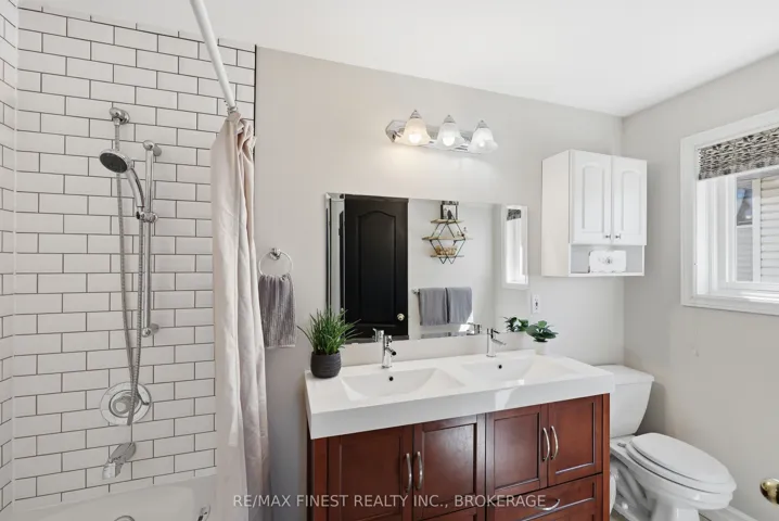 +"PublicRemarks": "WOW!!! This gorgeous south facing 5 bedroom 2.5 bathroom bungalow with over 2300 SQ' of finished living space, 2 car garage, double wide driveway with curbs and no sidewalk is located just minutes from Lemoine Point, Lake Ontario, The Landings Golf Course and all west end shopping amenities and features a bright spacious main floor living room with gas fireplace and gleaming hardwood floors, a stunning renovated kitchen with loads of granite counter space, custom cabinetry, stainless steel fridge, natural gas stove, patio access directly to a peaceful covered deck overlooking a fully fenced backyard and Concrete Patio. 3 bedrooms including a large master bedroom with tons of closet space a 2 piece en-suite, 2 more spacious bedrooms and a newly renovated 5 piece main bathroom with double sinks and jetted tub. The fully finished lower level features a large cozy rec room, laundry room, 3 piece bathroom with shower and 2 more bedrooms, perfect for hosting friends and family or just enjoying the separate living space. Don't miss out!!"