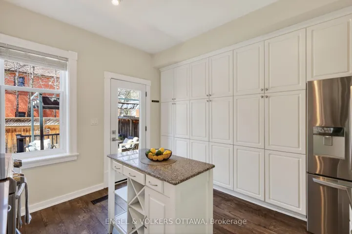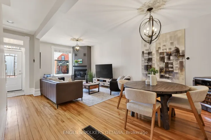 +"PublicRemarks": "This charming red brick townhome in the heart of the Glebe is just two blocks from Lansdowne Park, one block from the Rideau Canal and some of the city's best cafés, restaurants and boutiques along Bank St. The main level features a bright, open-concept design with an inviting living room with a wood fireplace, hardwood floors and a large south-facing window, which fill both the living and dining areas with natural light. Positioned at the rear of the home, the kitchen has a central island, ample cabinetry, recessed lighting, stainless steel appliances, and direct access to the backyard deck, enhancing indoor-outdoor living. A stylish 3-piece main floor bathroom with a glass-enclosed shower adds both convenience and practicality to this level. Upstairs, the cozy primary bedroom retreat features a walk-in closet, a cozy fireplace and access to its own private balcony. In the hallway, you'll notice a remote-controlled skylight and hardwood floors that run throughout the top level. The second bedroom provides flexibility for guests or a home office, while a full bathroom with a tub & shower combination completes the level. The finished lower level features a large room with recessed lighting, ideal for a media room or additional bedroom, while a utility and storage area adds to the home's flexibility. The fully fenced, low-maintenance backyard features a composite deck with a pergola that creates a comfortable outdoor living area, along with an interlocked lower level with a raised garden bed and a storage shed. This prime Glebe location is surrounded by abundant green space and year-round recreation opportunities in this highly walkable and connected community!"