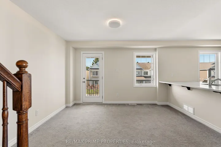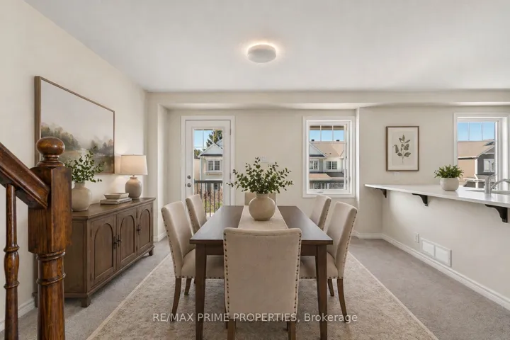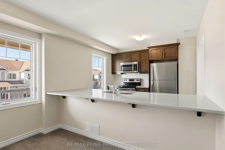 +"PublicRemarks": "Welcome to this beautifully maintained 3-storey freehold end-unit townhome located in the highly sought-after, family-friendly Avalon community of Orleans. This bright and spacious home offers a thoughtfully designed layout with 3 bedrooms, 1.5 bathrooms, and modern finishes throughout. Step inside to a welcoming ground-level foyer featuring a versatile den perfect for a home office or flex space, a convenient powder room, a laundry area, and interior access to the attached single-car garage. The second level showcases a stylish open-concept living and dining area, ideal for both entertaining and everyday living. The modern kitchen features a large quartz countertop with an extended overhang for additional seating, stainless steel appliances, ample cabinetry, and a functional layout that flows seamlessly into the main living space. Enjoy direct access to a private balcony offering a beautiful, picturesque view of the neighbourhood, an ideal spot to relax and unwind. Upstairs, the third level offers three well-proportioned, fully carpeted bedrooms, including a generous primary retreat with ample closet space. Two additional bedrooms and a full 4-piece bathroom complete this level. Freshly painted and vacant, this move-in-ready home offers added privacy as an end unit and a low-maintenance lifestyle. Located just minutes from top-rated schools, parks, shopping, dining, recreation, and public transit, this property is perfect as a starter home for families or a fantastic investment opportunity. Don't miss your chance to own in one of Orleans' most vibrant communities!"