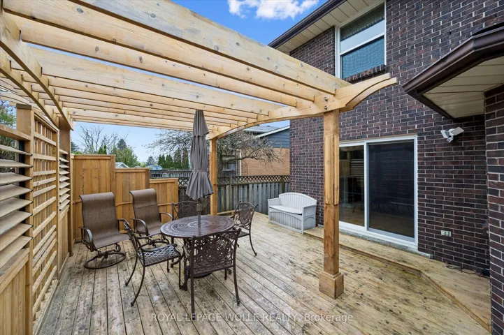 +"PublicRemarks": "Welcome to the desirable Forest Heights neighbourhood. This well-maintained, all-brick two-storey home is set on a quiet, tree-lined street close to parks and green space. Pride of ownership is evident throughout. The home offers 4 bedrooms, 4 bathrooms, and a double car garage-ideal for a growing family. The main floor features a spacious entry, separate living and dining rooms, an oak kitchen with a bright dinette, and a comfortable family room with a gas fireplace. There's also a convenient laundry/mudroom and a powder room on this level. From the family room, step out to a private, fully fenced backyard with a large cedar deck, mature trees, and a garden shed. Upstairs, a curved staircase leads to four good-sized bedrooms and a main bathroom. The primary bedroom includes a walk-in closet and a private ensuite with a corner tub. Hardwood flooring runs throughout the upper levels. The finished basement adds extra living space with a large recreation room, gas fireplace, wet bar, exercise area, bathroom, and a workshop/storage room. With direct access from the garage, there's potential for an in-law suite or rental setup. Key updates have been completed in recent years for added peace of mind. Conveniently located near the Forest Heights Community Trail, schools, shopping, and major routes including the expressway and Highway 401."