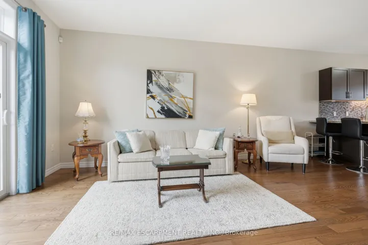 +"PublicRemarks": "Looking for maintenance-free living? Well, look no further than this gorgeous and incredibly well-maintained street-facing bungalow townhome in the desirable Binbrook Heights adult-lifestyle community. Built by the renowned John Bruce Robinson, this low-maintenance condo townhome is ideal for downsizers, retirees or empty nesters. Boasting a stunning open-concept main level, this beautiful home offers gleaming hardwood and ceramics throughout the first floor. The spacious chef's kitchen pairs rich espresso cabinetry with gorgeous granite countertops, and offers an extended peninsula with breakfast bar seating. A generous pantry gives plenty of space to store extra appliances and dry goods, and the bright and airy dinette features views of beautiful Binbrook. A warm and inviting living room, complete with cozy gas fireplace, features loads of natural light and a walk-out to the rear deck. A spacious primary suite completes the main floor living experience, and features double closets, a beautiful ensuite with walk-in shower, and a linen closet for bonus storage space. The fully finished basement offers tons of additional storage space and an additional 3-piece bathroom, as well as a huge rec room and a bonus den, which can double as guest accommodations. Low (only $330/month!) condo fees cover lawn maintenance/landscaping, snow removal, high-speed internet, cable, roof, windows/doors and exterior maintenance. Located walking distance from Fresh Co, Binbrook Gym, Shoppers, banks and medical, and only a short drive to many additional amenities, golf courses and major arteries, this sought-after community offers the perfect blend of tranquility and convenience. Don't miss out on calling this home yours!"