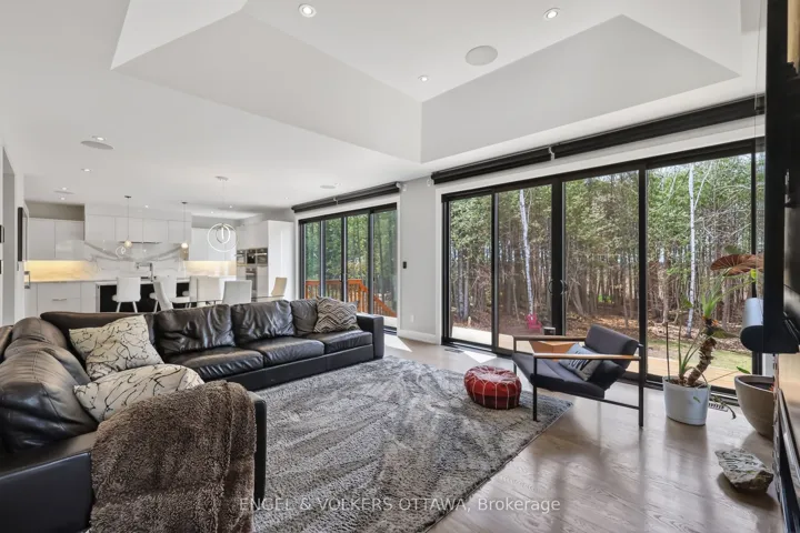 +"PublicRemarks": "234 Ridgemont Drive is a custom-built modern home in Ashton - 15 minutes from Kanata, 10 from Carleton Place and Stittsville, but a world away from any of them. Set on 1.27 acres with 155 feet of frontage and 345 feet of depth, this is one of the larger, more private lots on Ridgemont - surrounded by mature tree privacy, with a long private drive opening to a three-car attached garage. Purpose-built in 2017 with just under 3,000 sq ft of above-grade living space and the kind of natural light that only comes from a home designed once, by people who knew exactly what they wanted. The kitchen was designed for people who actually cook. High-end cabinetry, a full Miele and Jenn-Air package - integrated side-by-side fridge/freezer, built-in oven, speed oven, espresso maker, warming drawer, and microwave. A six-burner gas range with pot filler and hood anchors the cooking wall. Quartz counters and backsplash, abundant drawers, a window over the prep space. Off the kitchen, a butler's pantry with beverage and wine fridges, plus a custom wine room. Open from the kitchen, the family room features a coffered ceiling, gas fireplace with custom stone surround, and two massive patio doors leading to a large deck. Hardwood throughout, large-scale tile in the foyer. Lutron Home Works lighting, integrated speakers, motorized window coverings on every window, and accent lighting up the staircase. Upstairs, the primary is a true retreat - walk-in closet, custom focal wall, spa-style ensuite with oversized shower and soaker tub, views over the back. Three more generous bedrooms. Below, nearly 1,700 sq ft of unspoiled basement with high ceilings and bath rough-in - a blank canvas for a gym, theatre, or in-law suite. The deck overlooks a fully treed, farm-bordered lot. Room for a pool, hot tub, or winter skating rink. Full irrigation, mature landscaping. Be in Carleton Place in 10mins and Kanata in 15. You're not trading convenience for acreage - you're getting both."