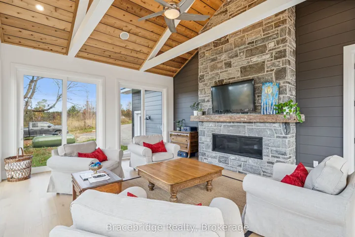 +"PublicRemarks": "Welcome to this exceptional 5-bedroom, 3-bathroom custom-built residence (2023), where thoughtful design meets elevated Muskoka living. Ideally located just minutes from downtown and only moments to Lake Muskoka-with walking access to Strawberry Bay Beach-this home offers the perfect balance of convenience, privacy and natural beauty. Crafted with quality and intention, the home is designed for seamless main-floor living, featuring a bright, open-concept layout, a dedicated home office and expansive windows that frame peaceful, treed views from every angle. The gourmet kitchen anchors the space, effortlessly connecting to the dining and living areas-perfect for both entertaining and everyday living. Warmth and comfort are felt throughout, with two propane fireplaces enhancing both the main living area and the inviting four-season Muskoka room-an ideal space to unwind year-round. The primary suite is a true retreat, offering two walk-in closets, a beautifully appointed spa-like ensuite, and tranquil views of the surrounding landscape. The fully finished, above-grade walkout lower level adds incredible versatility. A spacious three-bay fully insulated garage provides ample room for vehicles, storage, and all your Muskoka essentials, supporting an effortless four-season lifestyle. Set in a highly sought-after location with easy access to town amenities, trails, and the lake, this home delivers the rare combination of modern craftsmanship, functional design, and timeless appeal. Turn-key and move-in ready, this is an outstanding opportunity to experience Muskoka living at its finest."