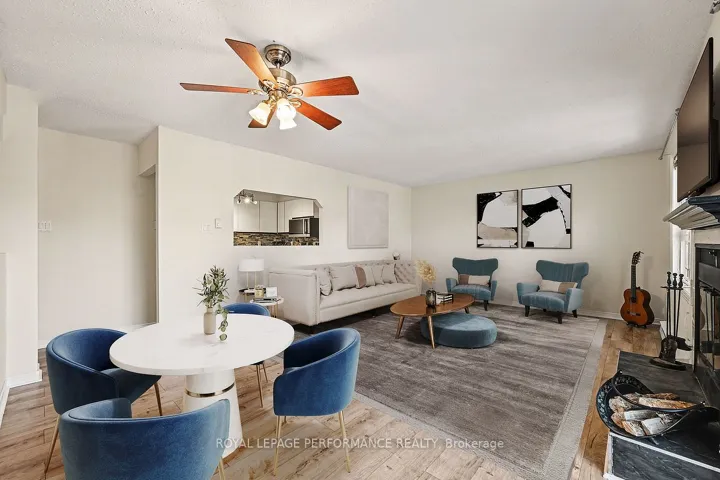 +"PublicRemarks": "Welcome to this Updated Upper-End Unit offering 2 bedrooms and 2.5 bathrooms, perfectly positioned just steps from the Greenbelt with access to scenic walking and nature trails. Step inside to a bright, open-concept main level featuring newly installed wood flooring (2023) and a freshly painted interior (2026). The spacious living and dining areas are ideal for both everyday living and entertaining, highlighted by a charming wood-burning fireplace with a slate hearth and direct access to a private balcony. The well-appointed kitchen offers stainless steel Stove, New Microwave/Hood-fan(2026), newer Fridge(2022), a stylish mosaic tile backsplash, ample cabinetry and a convenient pantry. A powder room and in-unit laundry complete this level. The upper level provides a thoughtfully designed layout with a generous primary bedroom featuring a large walk-in closet and a private 3-piece ensuite with shower. A well-sized second bedroom, full bathroom, linen closet and additional storage ensure comfort and functionality for any lifestyle. Recent updates include a new porch, stairs, and fence (2022). Located close to NDHQ/Carling campus, schools, shopping, transit and easy highway access, this home combines comfort, and a convenient location surrounded by nature."