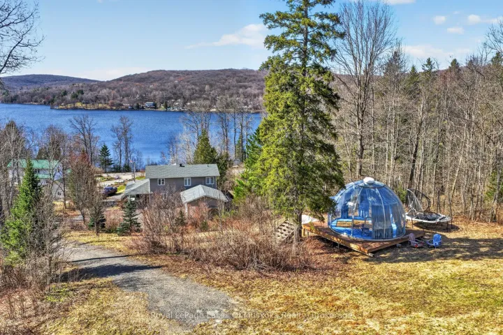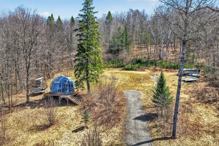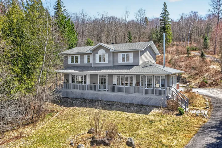 +"PublicRemarks": "Fabulous 5 bedroom, 4 bathroom rereational residence on 10 acres with your dock across the road on sought after Doe Lake, an 18km boating system. This quality built home or cottage features 2214 sq ft plus full mostly finished basement. The main level is open concept living/dining with wood floors and gourmet kitchen all overlooking the lake views. The sunroom off of the kitchen features a wood stove with patio doors to a deck and your hot tub. Main level laundry room with ample storage for your life jackets, outdoor equipment, snowmobile helmets, etc. 2nd level offers 3 large bedrooms each with king beds. Primary bedroom with a dream ensuite with glass shower and soaker claw foot tub. An open area which current owners use as an office could also be great video game area or reading nook. The large family room/recreation room in the basement is great for movie nights, ping pong, pool, you choose, there is plenty of space. 2 more rooms in the basement being used as bedrooms, although the septic permit is for a 3 bedroom residence it is oversize at 4500 litres. A 2 piece 4th bathroom in the basement along with storage completes your every need for the interior. An attached double car garage for cars and storage, central air, fibre optic, patio with firepit. Your own 10 acres to hike, bike, trike, sled. Your licensed dock on Doe Lake for swimming and boating. One of the best features is...the dome! Great spot for hanging out in and enjoying the panoramic breathtaking lake views. Quick closing is available and furnishings belonging to the sellers are negotiable after the purchase of the property. New shingles in 2025."