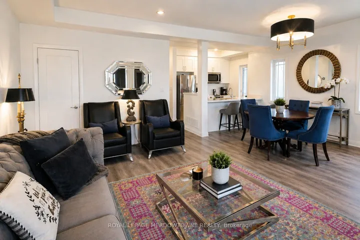 +"PublicRemarks": "Welcome to this bright end-unit Tulip model in Laguna Village at Summit Park, offering functional, low-maintenance living in one of Hamilton's most established and expansive master-planned communities. With approx. 1,438 sq ft across three levels, this home is filled with natural light thanks to its end-unit positioning and additional windows throughout. The main living level features a well-designed layout with open yet defined living and dining areas, modern laminate flooring, and a walkout to a covered balcony that feels like an extension of your living space. Morning coffee, evening wind-down... it just works. The kitchen is both stylish and practical with quartz countertops, stainless steel appliances, and a large breakfast bar with seating. The ground level offers a versatile media room, ideal for a home office, secondary living space, or playroom along with direct access to the garage, adding everyday convenience and functionality. Upstairs features three generously sized bedrooms and a full 4-piece bath, along with a convenient powder room on the main living level. Located within the larger Summit Park community known for its parks, schools, and everyday amenities, this home offers true community living with seamless commuting and access to highways."