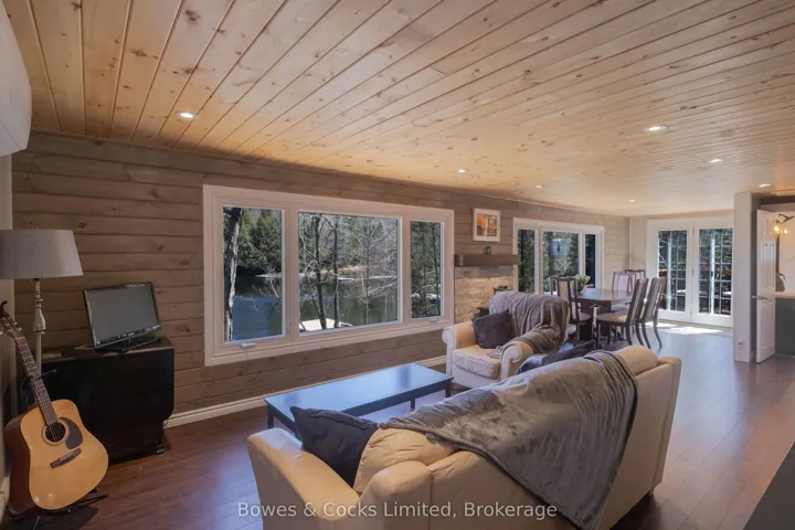 +"PublicRemarks": "Beautifully renovated 4-bedroom, 2-bathroom waterfront home or cottage, in an exclusive bay on sought-after Esson Lake. The new septic system, UV filter, heat pump with A/C, 200-amp panel, dishwasher, tongue and groove walls and ceilings and upgraded insulation, along with the modern wood fireplace and upgraded baseboard heaters throughout, create a four-season paradise. New waterfront deck, dock, outdoor furniture, barbeque, paddleboat and most indoor furnishings included. Large 180 sq./ft. shed is perfect for lawn equipment and toys. Situated in a wonderful community of longtime residents and cottagers, walking distance to the boat launch and only five minutes to Wilberforce and 20 minutes to Haliburton. Private road is maintained and plowed, and driveway is plowed, through the road association."