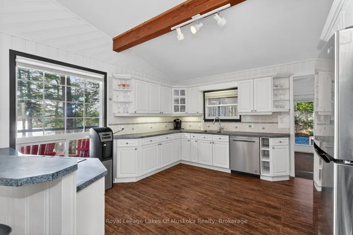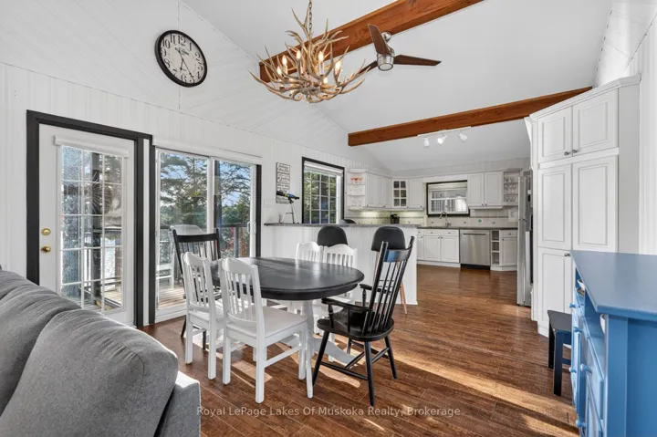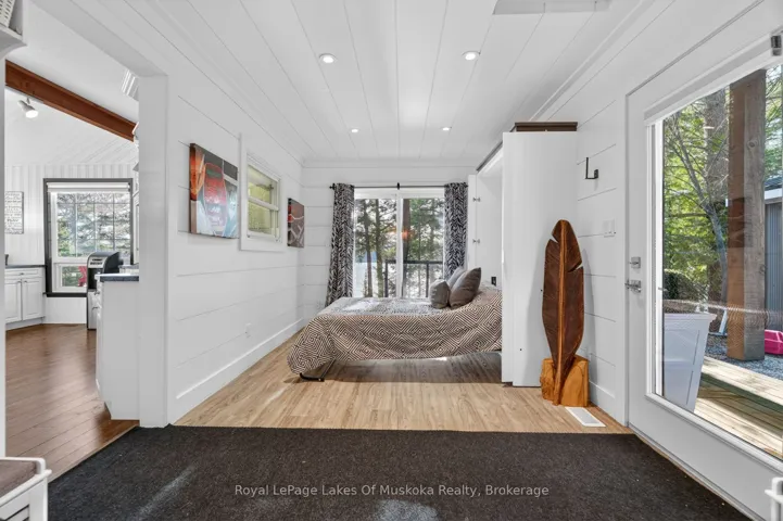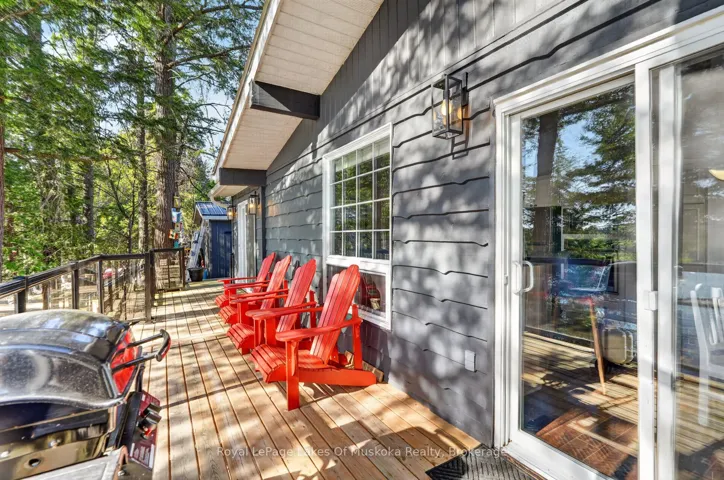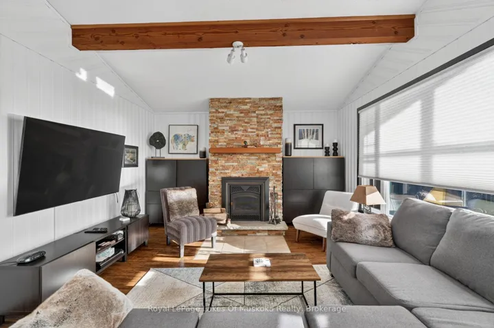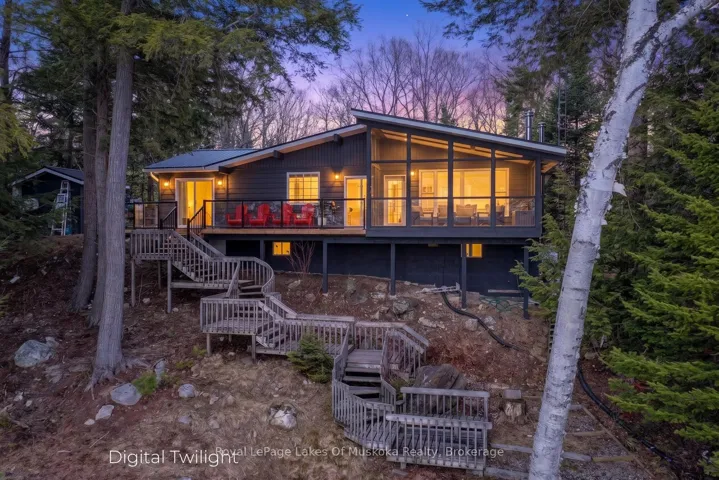 +"PublicRemarks": "Absolutely breathtaking panoramic sunset views of sought after Three Mile Lake. This deep clean healthy lake is one of the nicest in the Almaguin area. This very attractive 3 bedroom, 2 bathroom year round home or cottage is a pleasure to view! Open concept kitchen, dining and living room all have spectacular view of the lake. Spacious and sunlit interior with up to the minute decor featuring ship lap, vaulted ceilings with exposed wood beams, propane fireplace, wood floors. Kitchen has ample cabinet space as well as a breakfast counter with seating. Dining is great for entertaining and living room is large enough for family movie nights and relaxing by the fireplace. 3 bedrooms including an ensuite priviledge to a newer 3 piece bathroom that includes glass shower. Family room area which has multi-uses as a 4th sleeping area with murphy bed (included) or can be repurposed to a family room, play area, you choose. The main 4 piece has been renovated and is very attractive. There is main level laundry in a closet. A quintessential Muskoka room overlooking the lake accessed from glass patio door is a great 3 season space to enjoy the outdoors even when it is raining. The crawl space is clean and dry and houses the furnace and is a great storage area. Central air, generator, bunkie for the kids, single car garage with side shed for your toys. A newer shed close to the recreational residence plus a shed at the water's edge for your paddles, life jackets and potentially a fridge. The dock is large and spans along the lakefront so provides ample area for lounging as well as boat docking. The lakefront is gorgeous with rock and pines reminiscent of a Group of 7 painting. Steps to the lake with a half way deck for another area to sit and read, have your morning coffee or your glass of wine in complete quiet and privacy from everyone. Firepit patio. Comes equipped and ready to enjoy. There is also a portable garage close to the road to store more toys."