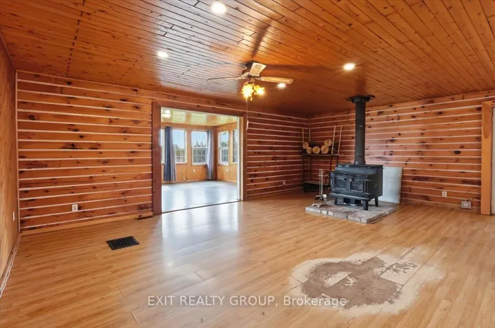 +"PublicRemarks": "Charming 3 bed, 2 bath log bungalow with an attached 2 car garage on a sprawling 1.6 acres. This property offers an opportunity to embrace a quiet country lifestyle surrounded by a mature, treed landscape. The heart of the home features an open-concept design where a spacious eat-in kitchen-complete with a functional pantry - flows into a welcoming living area. A rustic woodstove serves as a focal point for cooler evenings. The main level includes a bright sunroom that connects the interior to the outdoors, providing a space for morning coffee or relaxation. The primary suite serves as a retreat, featuring a private three-piece ensuite and a walk-in closet. Two additional well-sized bedrooms and a second three-piece bathroom ensure plenty of space for family or guests. For convenience, the attached double garage offers inside entry to the home. Situated in Prince Edward County, you are moments away from the region's wineries, craft breweries, and sand beaches. Whether you are seeking a weekend escape or a permanent residence, this log home offers a blend of rustic character and modern convenience."