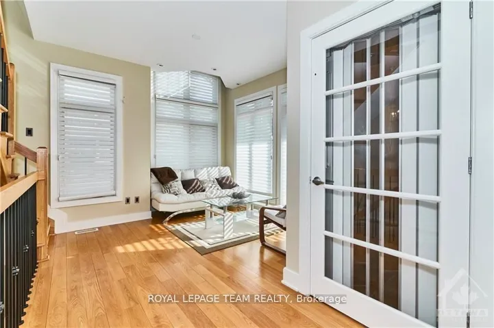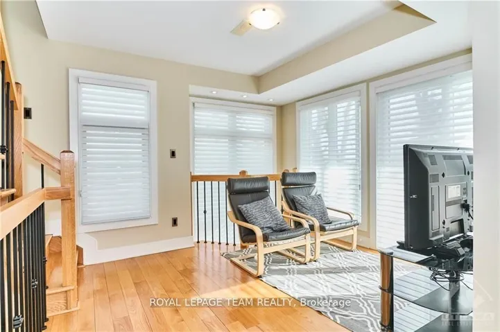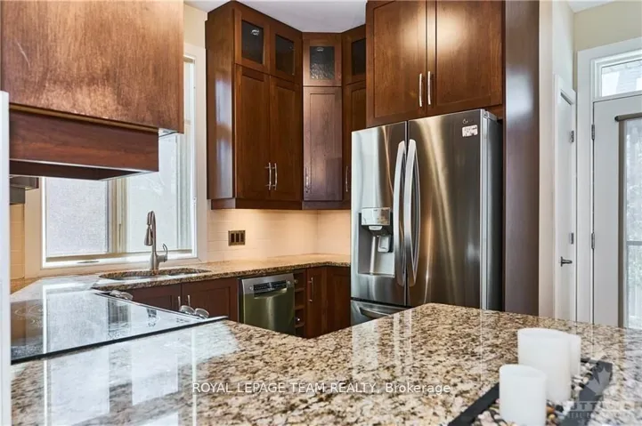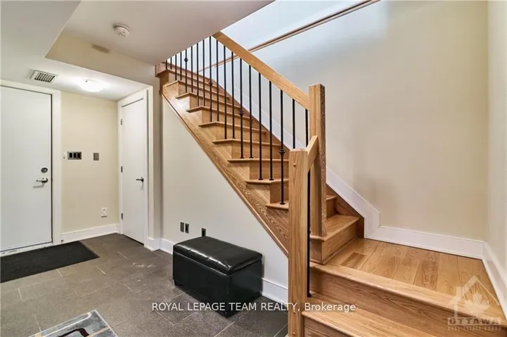 +"PublicRemarks": "A striking, ultra-modern end-unit in one of Ottawa's most convenient and sought-after neighbourhoods. Defined by its unique architecture and clean contemporary design, this home stands apart with a look and feel that is rarely found. The interior offers a bright, functional layout with hardwood flooring throughout and large windows that fill the home with natural light on every level. The kitchen features granite countertops, generous workspace, and an easy flow into the main living areas, ideal for both daily living and entertaining. Custom window coverings are already installed, adding a finished and cohesive feel. An in-home elevator provides exceptional convenience and long-term accessibility across all levels. The second floor is thoughtfully laid out for family or guests, with a full laundry area placed exactly where it is most useful. The primary suite is well designed with a walk-in closet and a 5-piece ensuite featuring a double vanity, soaker tub, and walk-in shower.On the top level, the rooftop terrace is a standout feature. Exceptionally large and private, it offers impressive views of the city along with a gas BBQ hookup, creating a true outdoor extension of the living space. The lower level includes inside access to the garage along with a bright office space that works well for working from home. Additional features include a heated driveway and low-maintenance living. Association fees cover lawn, garden, and snow management, making for truly simplified ownership. Few row units combine this level of design, function, and location."