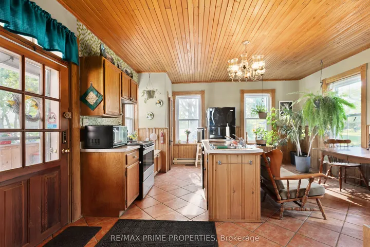 +"PublicRemarks": "Explore this beautifully updated home with peaceful surroundings with a stunning view. Built in 1885, this Victorian residence offers spacious comfort with 4 bedrooms and 3 full baths. All 3 washrooms have been redone with pine finishes. The master bedroom, a cozy sitting room, and two of the baths also feature stunning pine finishes. The kitchen is adorned with ceramic tile, and the original pine floors extend throughout the house. Recent upgrades include a new propane furnace and a new water softening system, and porches redone, a updated septic tank, new windows on both levels all in 2023, and metal shingled roof. A charming wood-burning stove, with extra split wood. The fully landscaped yard, featuring perennials and flowering shrubs, creates a private oasis surrounded by farmland. Amenities include a large dog run, a small barn, quick access to the 417, a double garage, and a workshop. Propane furnace upgraded 2024, Flooring: Softwood, Tile"